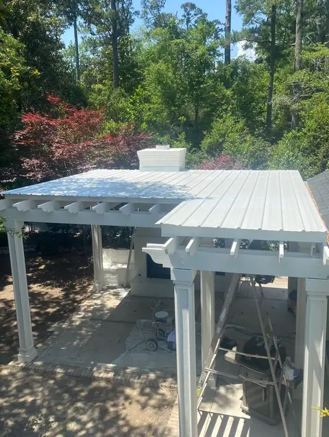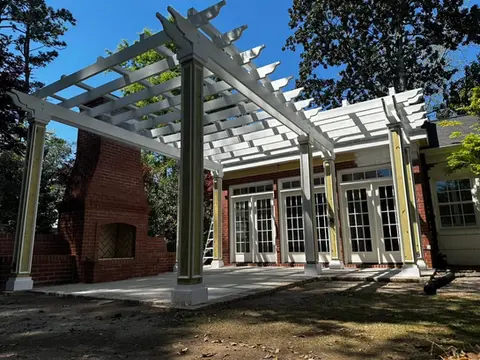 We transformed this backyard space by building a beautiful in-ground covered patio, designed for both style and function. Painted crisp white, the structure adds a clean, modern look while providing shade and comfort. It's the perfect spot for relaxing or entertaining — and it looks just as good as it feels.